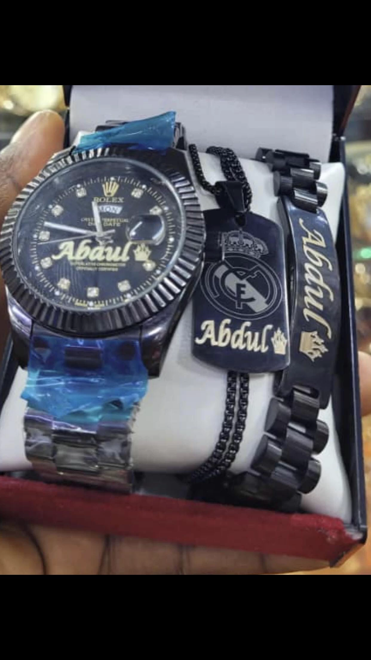 Ensemble composé d’une montre , d’une chaîne et d’une gommette personnalisé