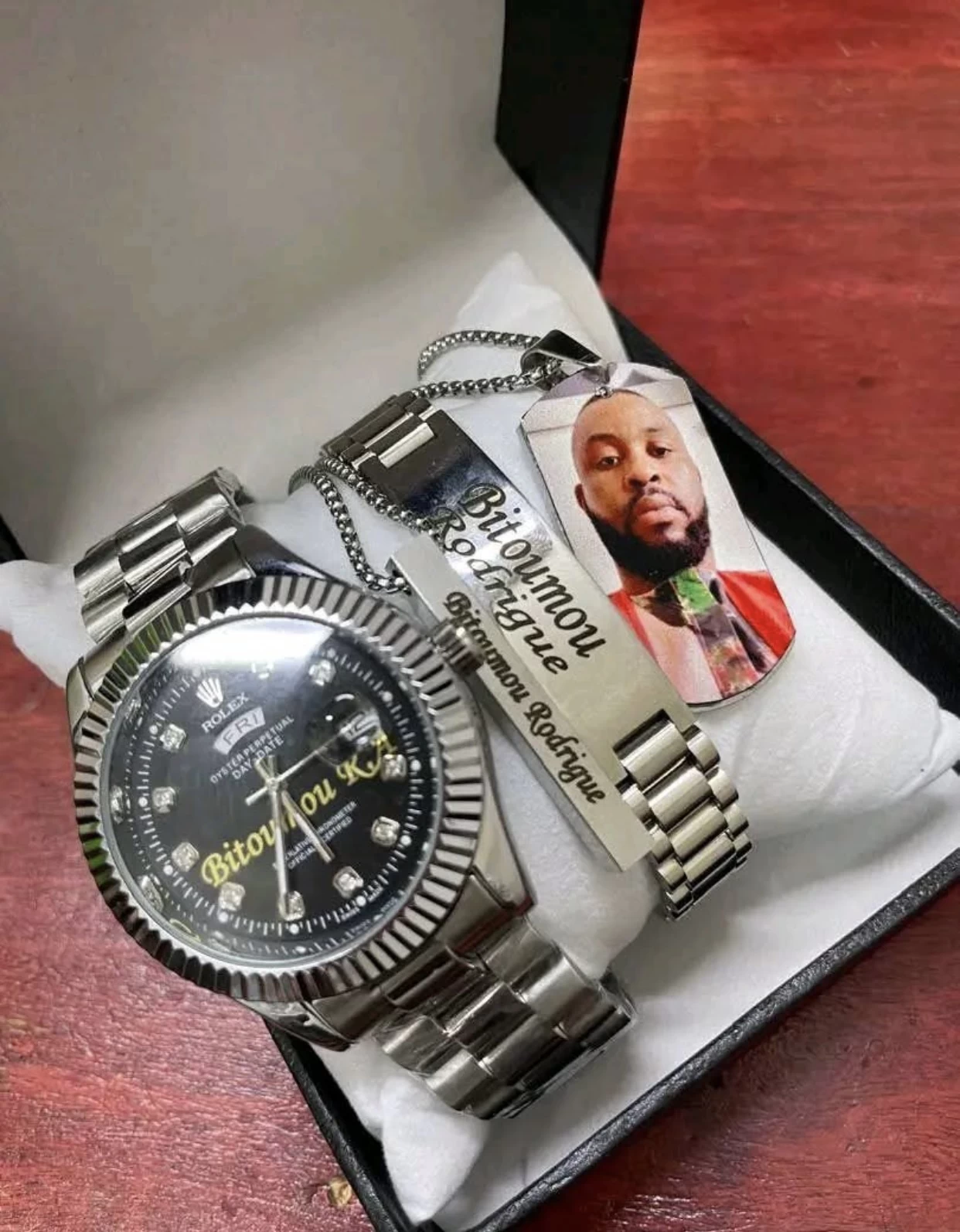 Ensemble composé d’une montre , d’une chaîne et d’une gommette personnalisé